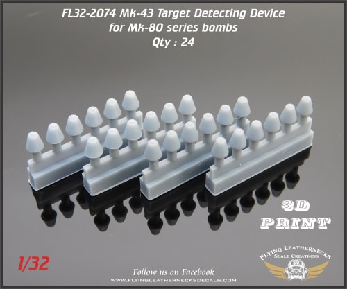 This set provides 24 Mk-43 TDD (Target Detecting Device) and will provide another option for your kit supplied bombs at a reasonable cost. Parts are 3D printed and come as shown in the photo.