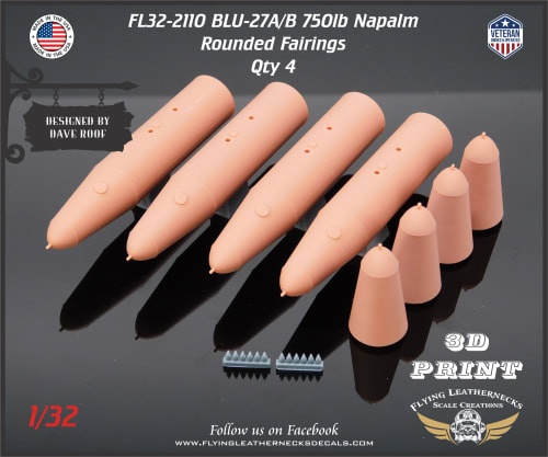 This set includes four (4) BLU-27A/B 750lb Napalm canisters with rounded nose and tail fairings.