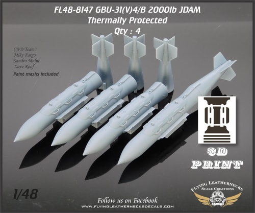 This set includes four (4) GBU-31(V)4/B Thermally Protected 2000lb JDAM using the BLU-109 warhead. Also included are four (4) KMU-558 tail kits.