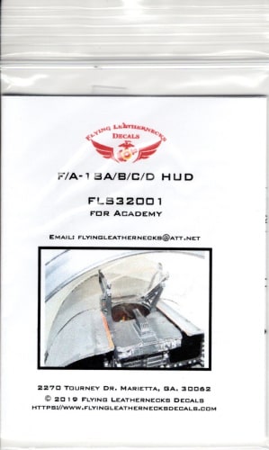 This is a simple replacement for the slightly too thick kit supplied HUD's. Cut in clear .007 styrene, simply cut HUD from runner and apply to kit HUD frame, or any aftermarket photo-etch frame. Enough pieces for six aircraft are included.